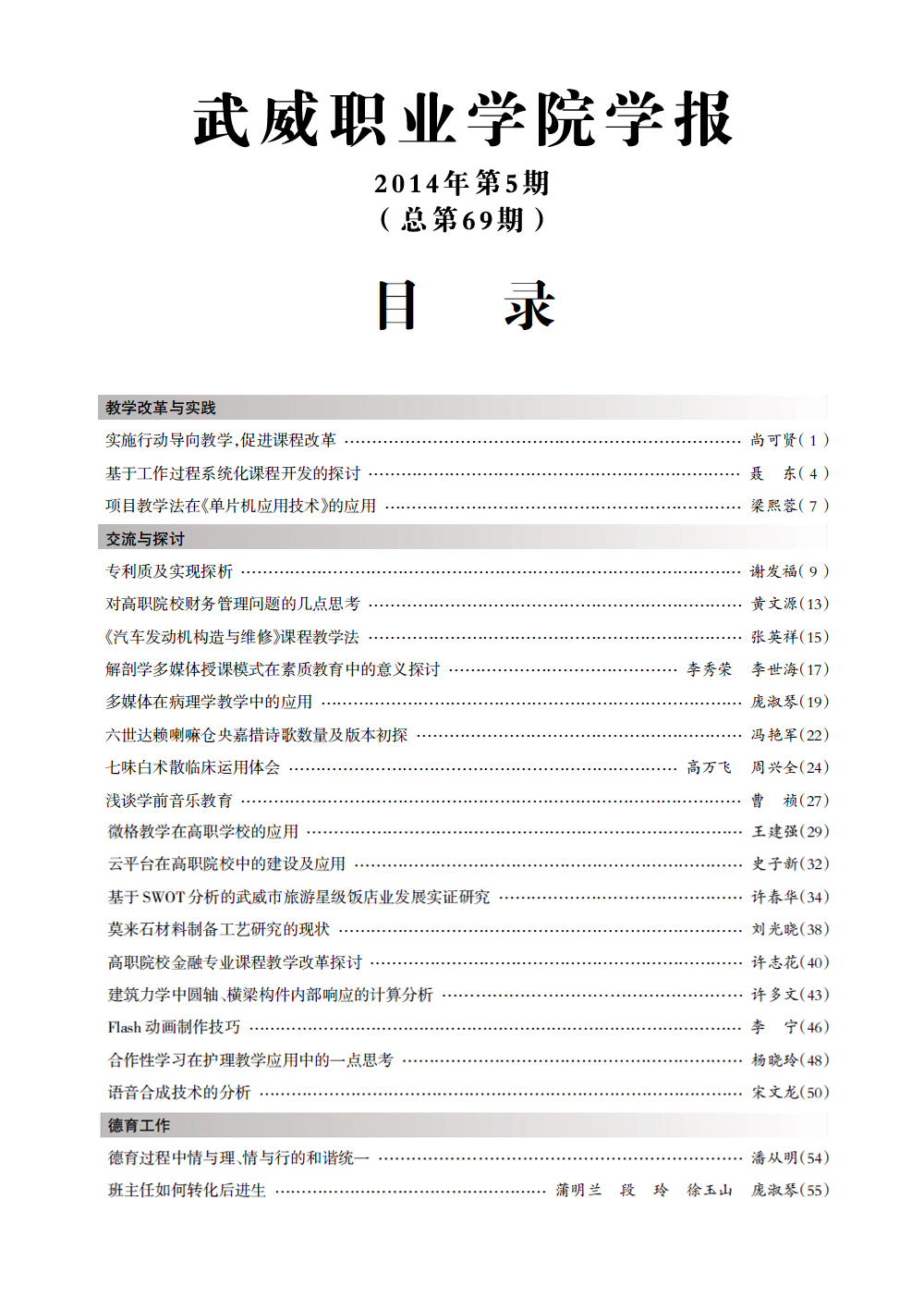 2014年《武威職業(yè)學(xué)院學(xué)報(bào)》目錄