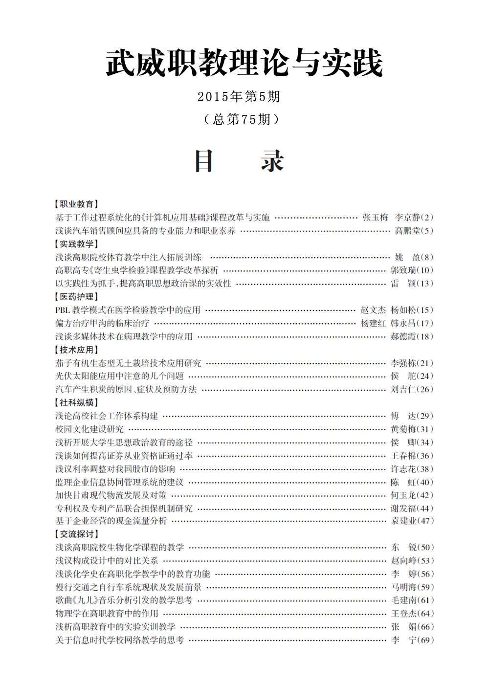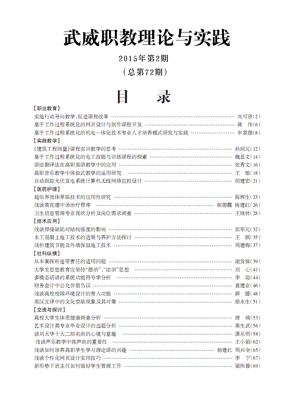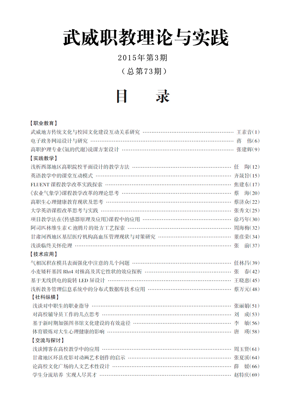 2015年《武威職教理論與實踐》目錄