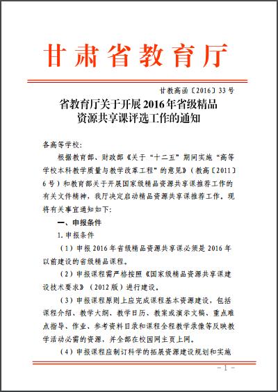 省教育廳關(guān)于開(kāi)展2016年省級(jí)精品資源共享課評(píng)選工作的通知