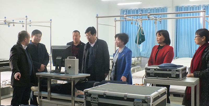 毛校長一行參觀了護理系的生命科技館、機能實訓(xùn)室、基護實訓(xùn)室、內(nèi)外科實訓(xùn)室等醫(yī)學(xué)類實訓(xùn)室,詳細了解了實驗設(shè)備的運行情況和實驗實訓(xùn)課程的教學(xué)管理模式。潘玉華向來賓們介紹了學(xué)院申辦臨床醫(yī)學(xué)專業(yè)的進展,以及我院實訓(xùn)課程建設(shè)和籌建實驗實訓(xùn)室取得的成果。