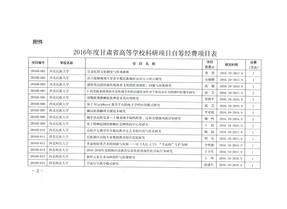 轉(zhuǎn)發(fā)甘肅省財政廳 教育廳文件 關于下達2016年度甘肅省高等學校科研項目自籌經(jīng)費項目的通知
