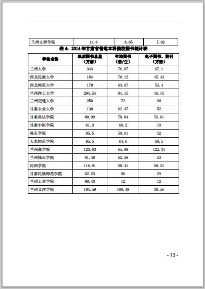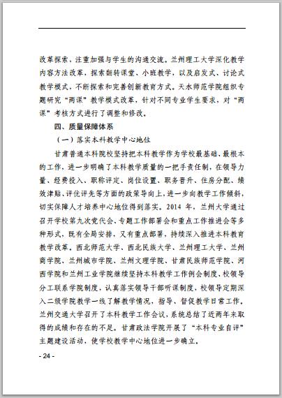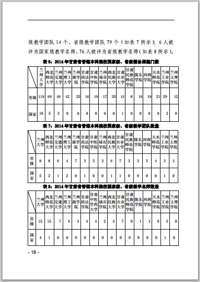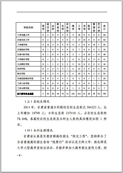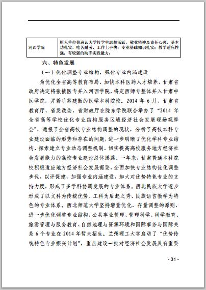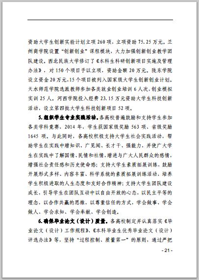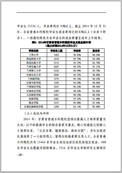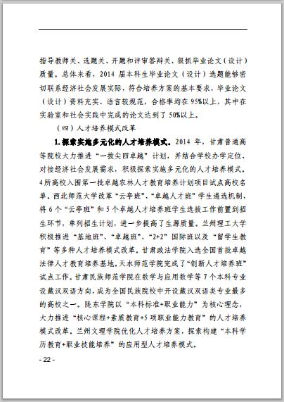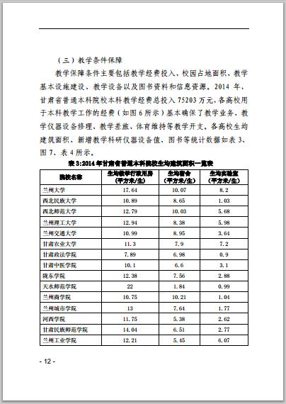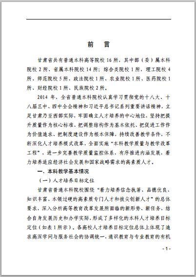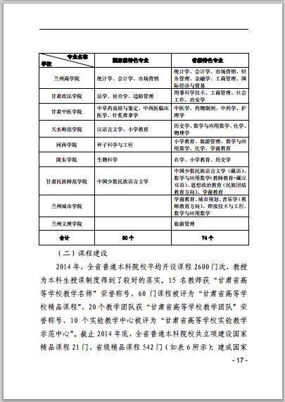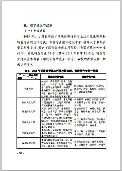 甘肅省普通高等學(xué)校2014年本科教學(xué)質(zhì)量報(bào)告