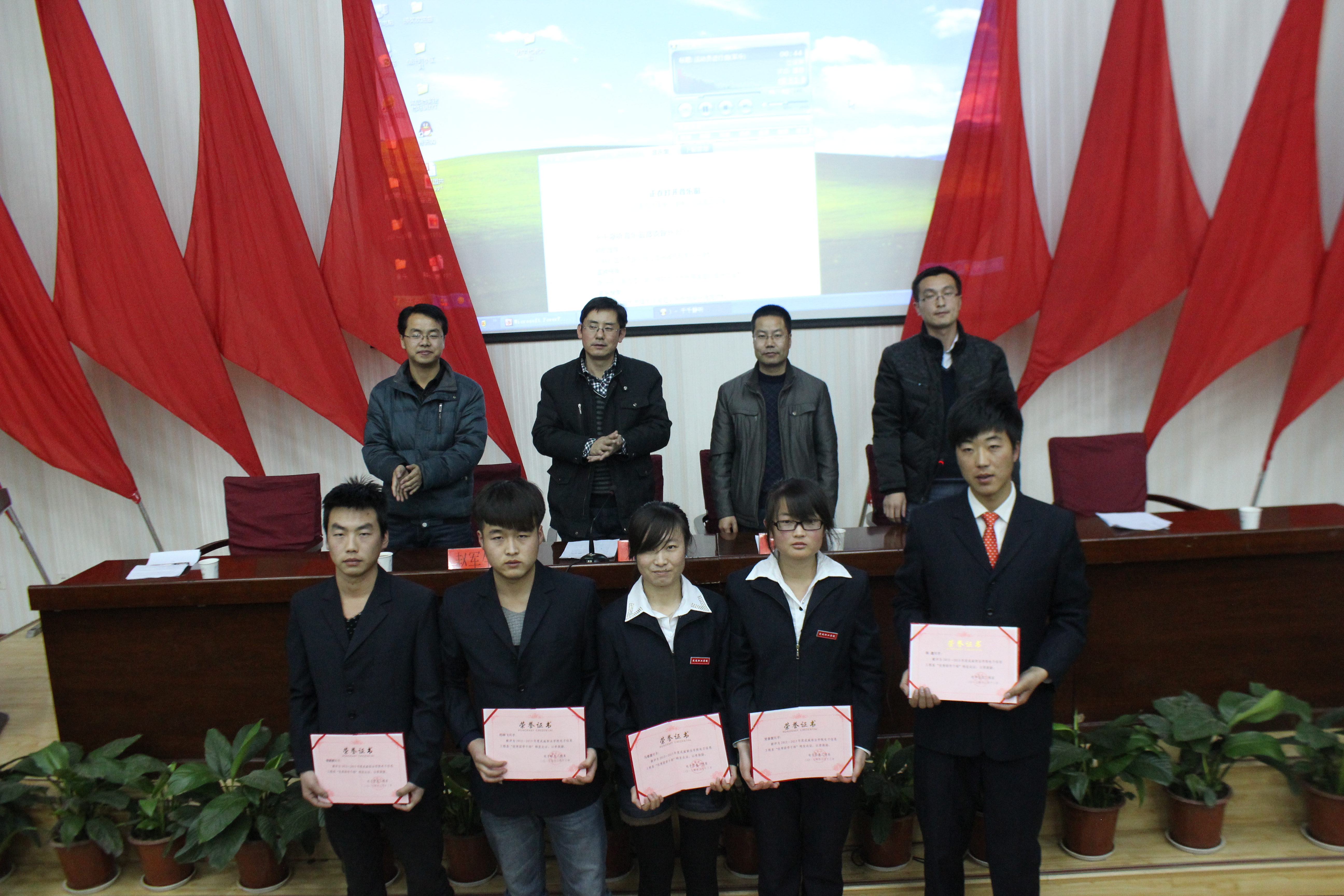 會(huì)上,第九屆團(tuán)總支、學(xué)生會(huì)分別做了2012—2013學(xué)年的工作總結(jié),表彰了黨春慧等5名表現(xiàn)突出的團(tuán)學(xué)干部,并選舉產(chǎn)生了新一屆團(tuán)學(xué)委員會(huì)。唐宗舜老師宣讀了《電子信息工程系第十屆團(tuán)學(xué)干部任命決定》,任命李向龍同學(xué)為學(xué)生會(huì)主席、巨星星同學(xué)為團(tuán)總支副書(shū)記。
