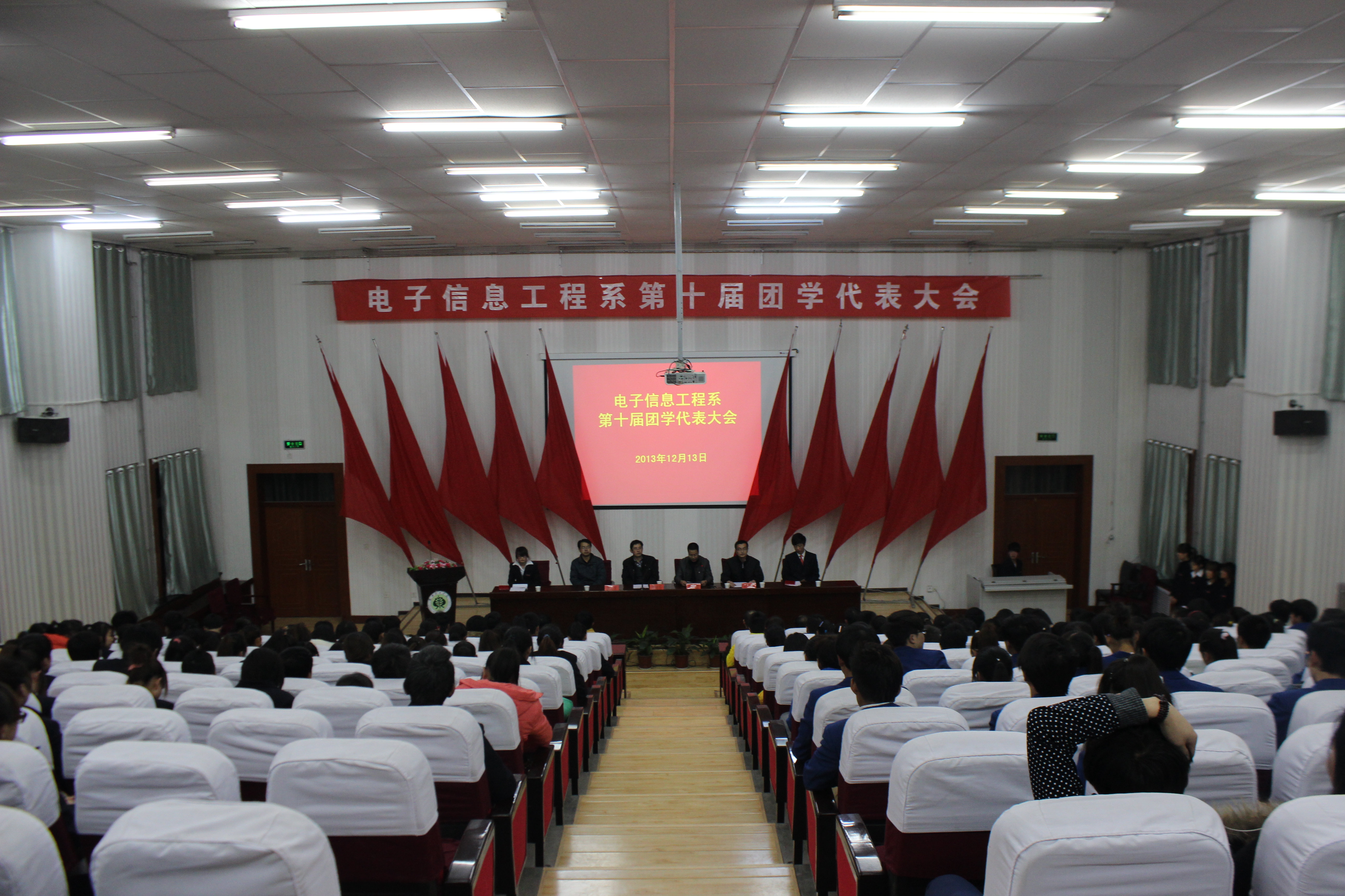 12月13日晚,電子信息工程系在東階梯教室召開(kāi)第十次團(tuán)學(xué)代表大會(huì),系黨總支書(shū)記張伯成、政治輔導(dǎo)員鄧偉華、第九屆團(tuán)總支書(shū)記趙軍生及全體班主任出席了大會(huì)。參加本次大會(huì)的還有各兄弟系的團(tuán)學(xué)干部代表及電信系學(xué)生代表220余人。