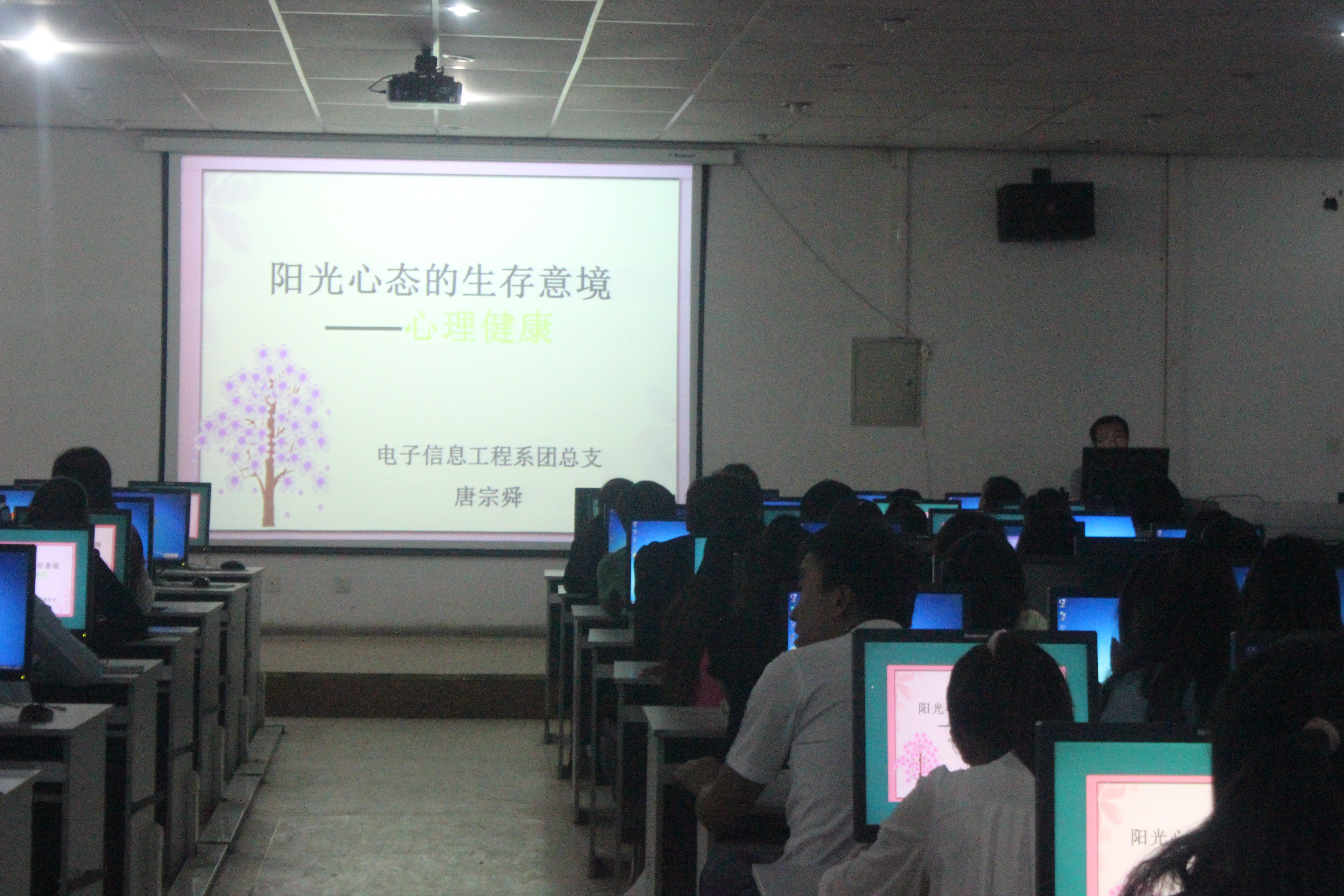 為了進(jìn)一步推進(jìn)大學(xué)生心理健康教育宣傳工作深入開展,在學(xué)生中營造一種學(xué)習(xí)、普及、宣傳心理健康知識,關(guān)心、理解、幫助有心理困擾的同學(xué),共同創(chuàng)造良好氛圍,促進(jìn)大學(xué)生健康成長,以適應(yīng)新時代、新環(huán)境需要。5月26日晚8時,電子信息工程系在學(xué)院十號機(jī)房舉辦心理健康教育專題講座。