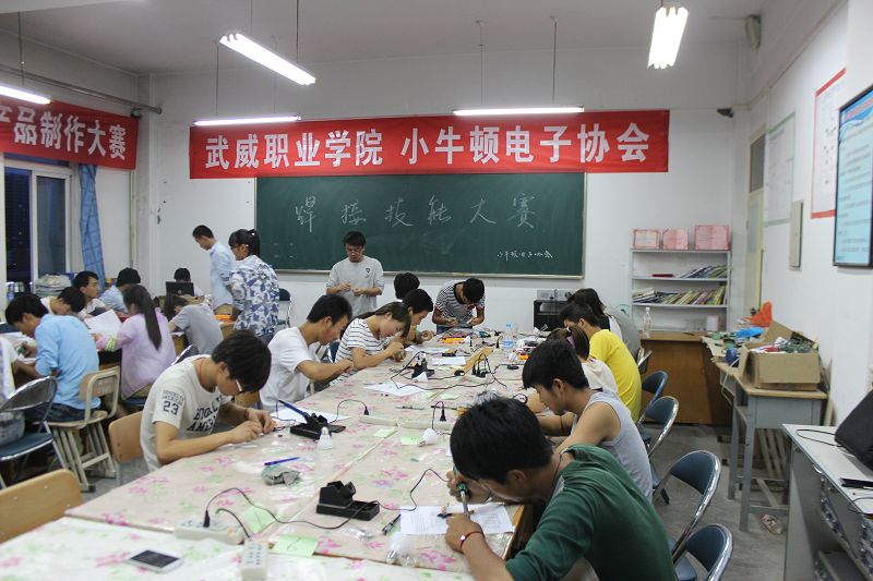 7月1日至2日晚自習(xí),由電子信息工程系小牛頓電子協(xié)會(huì)在我院尚德樓(一號教學(xué)樓)509教室舉辦了焊接技能大賽。此次活動(dòng)面向全院學(xué)生,此活動(dòng)分為兩部分,理論與實(shí)踐?;顒?dòng)進(jìn)行時(shí),有評委現(xiàn)場打分,并有電子信息工程系老師蒞臨指導(dǎo)。參加比賽的同學(xué)們認(rèn)真做題以及仔細(xì)焊接,現(xiàn)場比賽氛圍甚是緊張。