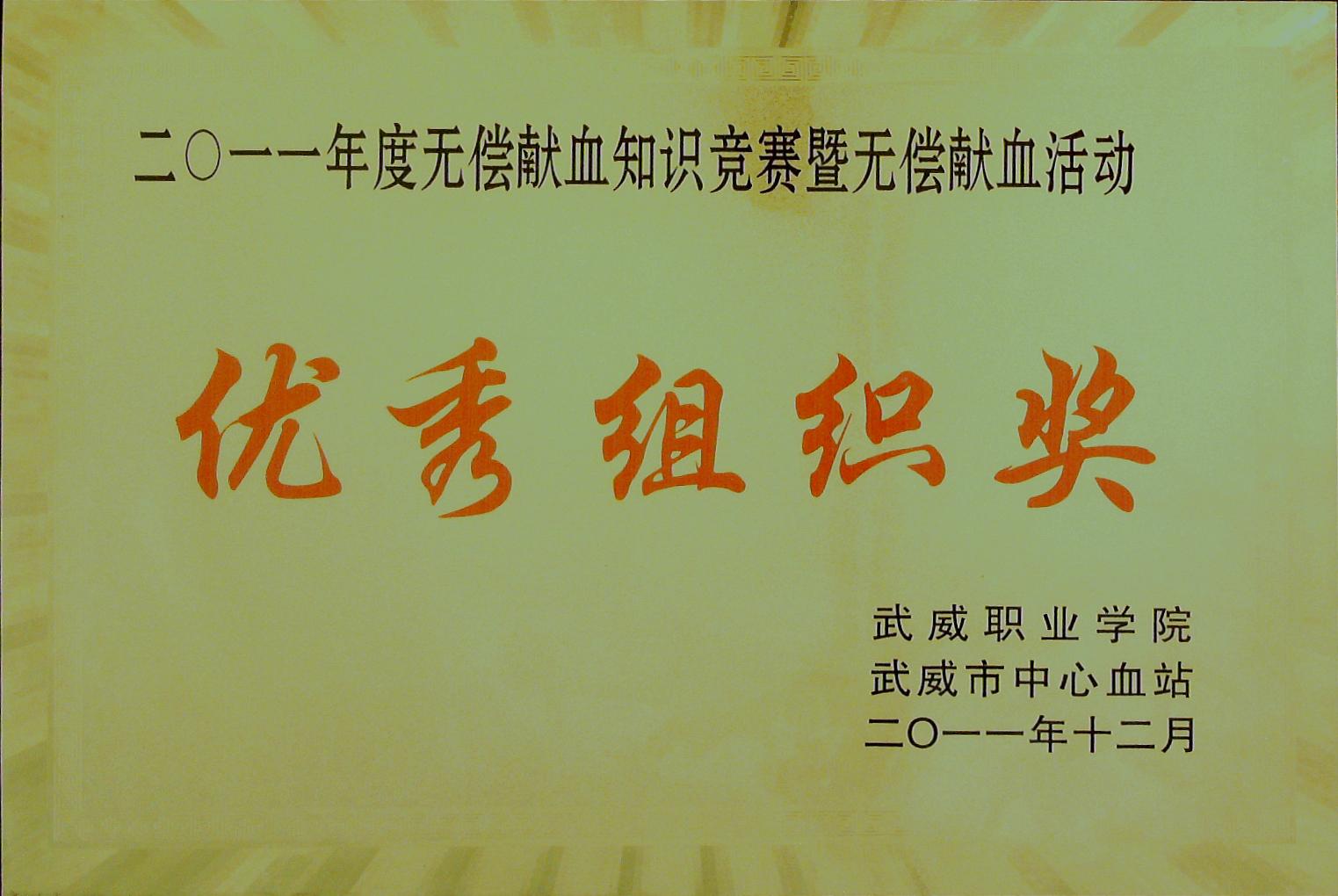 2011年無(wú)償獻(xiàn)血知識(shí)競(jìng)賽暨無(wú)償獻(xiàn)血優(yōu)秀組織獎(jiǎng)