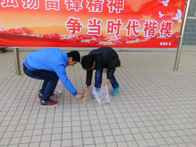 今年3月5日是毛澤東同志題詞“向雷鋒同志學(xué)習(xí)”50周年紀念日,也是第14個“中國青年志愿者服務(wù)日”。3月5日上午10時,我系青年志愿者在院團委的號召組織下,在學(xué)院中心廣場、1號教學(xué)樓、2號教學(xué)樓及南操場周圍展開了義務(wù)勞動。將馬路、花園、教學(xué)樓及操場周圍死角的紙屑、果皮等垃圾進行了徹底清理。我系青年志愿者發(fā)揮了不怕臟、不怕苦的精神。
