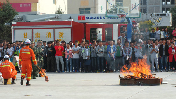 在演練現(xiàn)場,武威消防支隊(duì)的工作人員詳細(xì)講解了我院配備的ABC型干粉滅火器的性能、用途、操作方法及撲救初起火災(zāi)的注意事項(xiàng),并進(jìn)行了現(xiàn)場演示。2015級各新生代表組成滅火隊(duì)依照次序和規(guī)定,進(jìn)行了模擬火災(zāi)的現(xiàn)場撲救演練。演練中,滅火隊(duì)員動作正確、快捷、滅火過程快速安全,觀摩的同學(xué)們也很認(rèn)真。