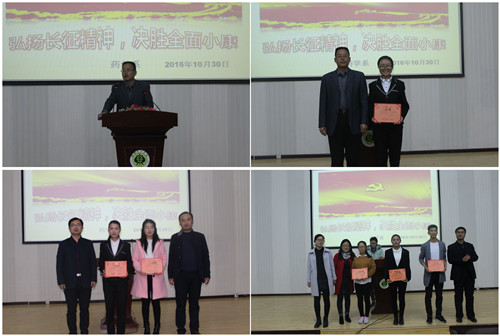 為紀(jì)念紅軍長征勝利80周年,激發(fā)師生弘揚(yáng)偉大的長征精神,同時(shí)為豐富校園文化生活,展示青春正能量,藥學(xué)系團(tuán)總支依據(jù)院團(tuán)委的通知精神和系團(tuán)學(xué)工作委員會(huì)關(guān)于增加學(xué)生課余活動(dòng)的會(huì)議要求,于10月30日在正德廳組織開展了“傳承長征精神,筑我青春夢想”主題演講比賽。藥學(xué)系主任魏潤明出席了本次活動(dòng),各班班主任擔(dān)任本次比賽評(píng)委,2016級(jí)全體學(xué)生和2015級(jí)各班學(xué)生代表觀看了比賽。