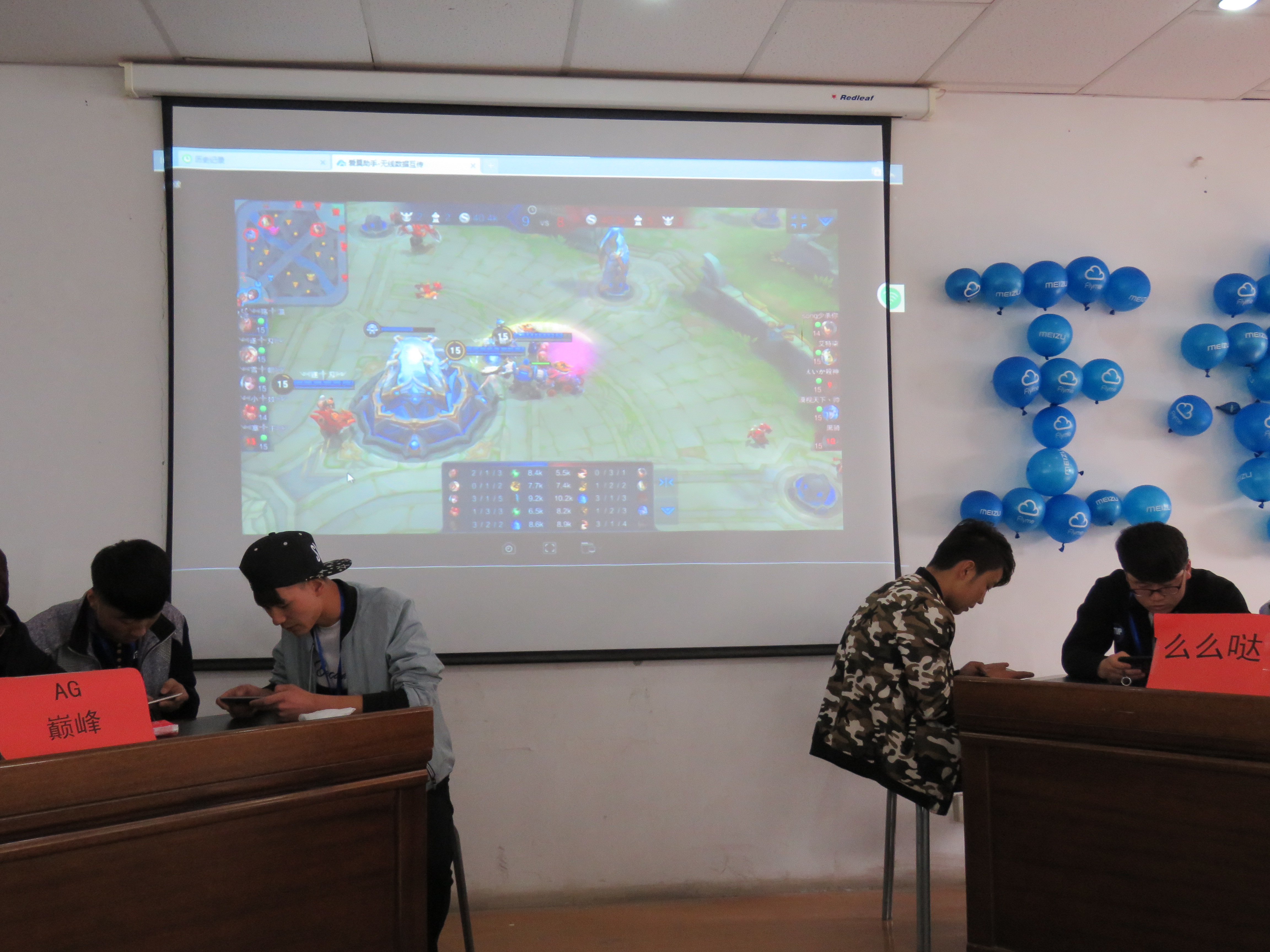 此次游戲競(jìng)技比賽以5人為一組的團(tuán)隊(duì)項(xiàng)目形式開(kāi)展。進(jìn)過(guò)預(yù)賽淘汰,最終有20個(gè)團(tuán)隊(duì)進(jìn)入決賽?;谑孪瘸浞值男麄?,16:40時(shí),不少同學(xué)到場(chǎng)加油觀戰(zhàn)并積極參與。一番調(diào)試之后,表演賽于17:00時(shí)正式開(kāi)始。現(xiàn)場(chǎng)同時(shí)設(shè)有3個(gè)競(jìng)賽臺(tái),同時(shí)可供3隊(duì)團(tuán)隊(duì)進(jìn)行對(duì)決。現(xiàn)場(chǎng)更是懸掛大屏幕,以跟進(jìn)賽程,滿足更多王者榮耀手游玩家的觀摩需要?,F(xiàn)場(chǎng)觀眾之心全然隨戰(zhàn)情跌宕起伏,場(chǎng)面激烈,氣氛活躍。參加夠級(jí)比賽的有6個(gè)組,采取首輪淘汰的制度,勝出的3個(gè)組打循環(huán)賽。事先制定了夠級(jí)的具體規(guī)則,然后按積分來(lái)判斷最后的名次。