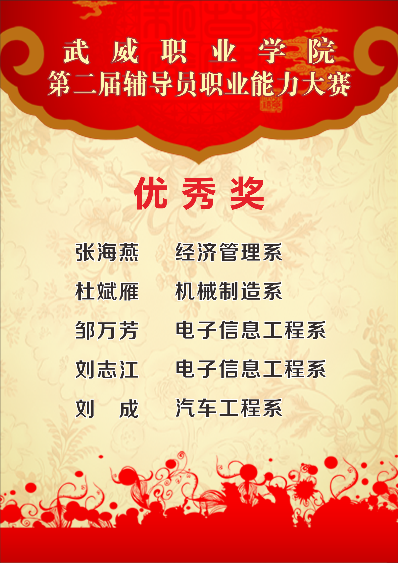 武威職業(yè)學(xué)院第二屆輔導(dǎo)員職業(yè)能力大賽光榮榜