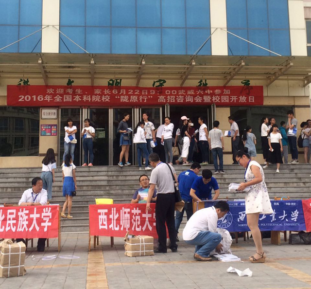 同一天,招生就業(yè)處還選派老師參加了在武威六中舉行的由《未來導報》主辦的“2016年全國本科院?!]原行’高招咨詢會”,就考生和家長關(guān)心的相關(guān)熱點問題進行了現(xiàn)場答疑解惑,考生及家長表示對他們掌握各院校熱門專業(yè)和報考要求有很大幫助。