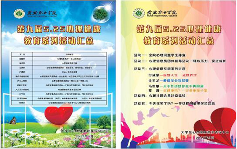 為貫徹落實(shí)習(xí)近平總書記在全國(guó)高校思想政治工作會(huì)議上的講話和教育部《關(guān)于加強(qiáng)普通高校大學(xué)生心理健康教育工作的意見》等文件精神,迎接“5·25”全國(guó)大學(xué)生心理健康日,提高我院學(xué)生心理健康水平,展現(xiàn)我院學(xué)生積極向上的精神風(fēng)貌。學(xué)生工作處于5月20日至6月20日開展了第九屆“5·25”心理健康宣傳月系列活動(dòng)。