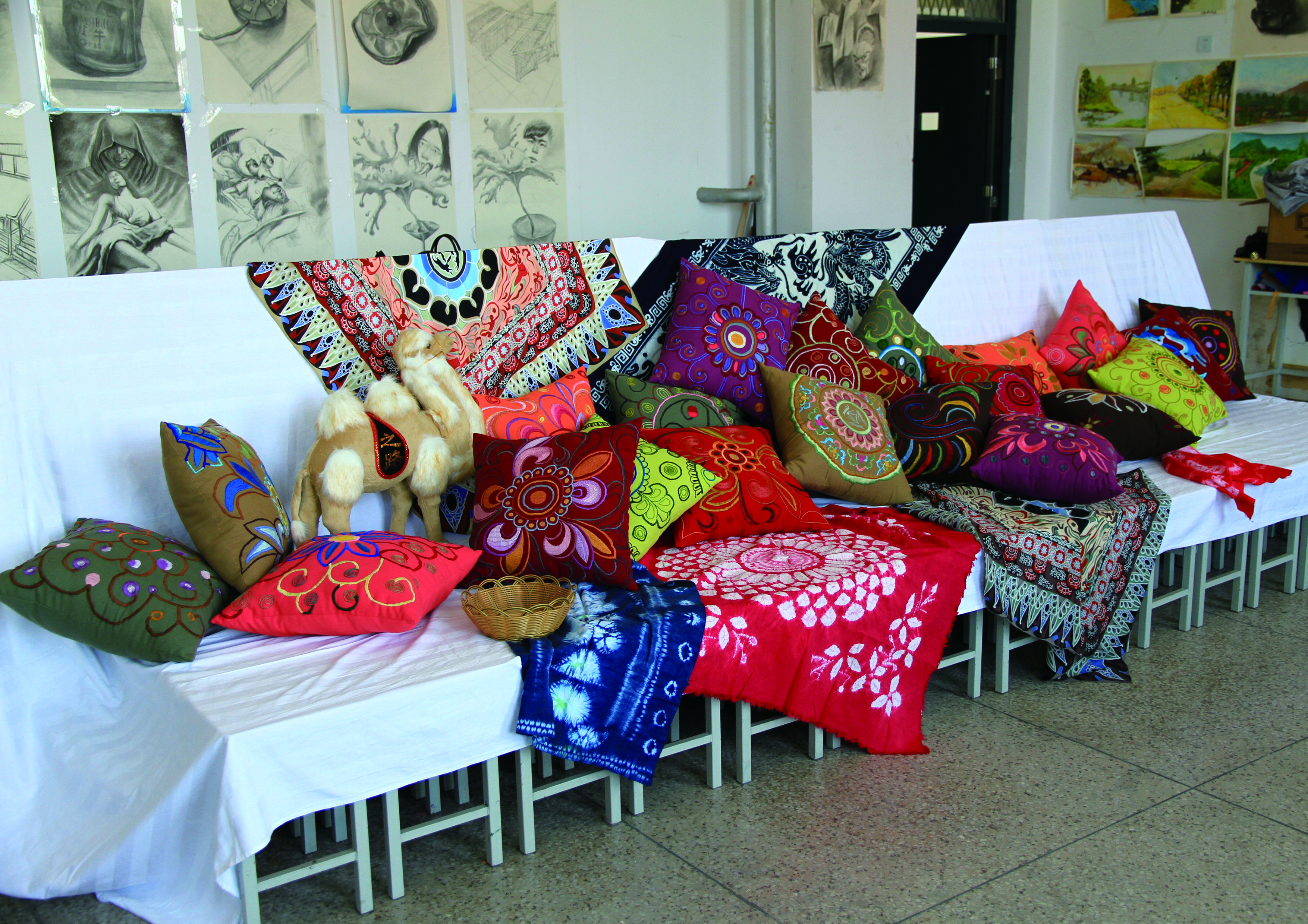 恰逢“一帶一路”偉大戰(zhàn)略構(gòu)想開展之際,近日,為迎接“第二屆敦煌絲綢之路國際文化博覽會(huì)”的勝利召開,人文藝術(shù)教育系組織學(xué)前教育專業(yè)師生積極研發(fā)創(chuàng)意旅游作品,參加由省婦聯(lián)、省教育廳、省高校工委組織的“第一屆女大學(xué)生巧手創(chuàng)意大賽”。學(xué)院人文藝術(shù)教育系利用武威地處絲綢之路經(jīng)濟(jì)帶“咽喉”的區(qū)位優(yōu)勢,挖掘古絲綢之路文化,激發(fā)學(xué)生創(chuàng)新創(chuàng)業(yè)能力,以精美的敦煌壁畫藻井圖案為造型元素,用刺繡的手法設(shè)計(jì)制作裝飾、實(shí)用效果極佳的抱枕等紡織作品,作品傳承了古絲綢之路文化,承載著廣大師生對(duì)敦煌藝術(shù)的向往和追求。參賽作品展現(xiàn)了人文藝術(shù)教育系學(xué)生的精美刺繡工藝和獨(dú)特的創(chuàng)意手法,體現(xiàn)了人文藝術(shù)教育系特色教學(xué)成果。據(jù)悉,參賽優(yōu)秀作品將在“第二屆敦煌絲綢之路國際文化博覽會(huì)”上展出。