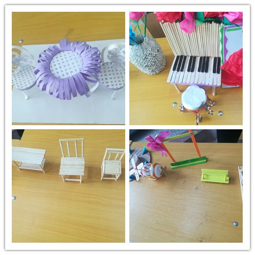 活動(dòng)中,指導(dǎo)老師要求學(xué)生們充分利用身邊廢棄的飲料瓶、廢紙、塑料、布料、木料等廢舊材料,通過(guò)自己的創(chuàng)意,制作出體現(xiàn)科技、環(huán)保的工藝作品?;顒?dòng)布置后,同學(xué)們積極參與,充分利用網(wǎng)絡(luò)搜集相關(guān)資料及設(shè)計(jì)圖案,憑借豐富的想象力和創(chuàng)造力,將生活中的廢品制作成了各種各樣的手工藝術(shù)品。