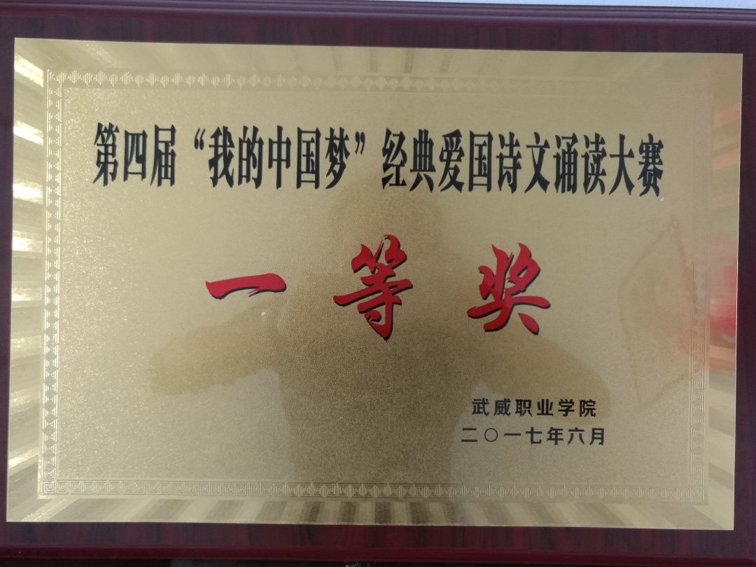 為進(jìn)一步推進(jìn)優(yōu)質(zhì)校建設(shè),加強(qiáng)學(xué)生思想素質(zhì)修養(yǎng),豐富學(xué)生課余文化生活,提高學(xué)生精神文明建設(shè),我系選派由15學(xué)10曹智娟,李濤濤,15學(xué)4王菲,16動(dòng)漫林露組成的參賽隊(duì)參加武威職業(yè)學(xué)院第四屆愛國詩文朗誦比賽決賽,比賽在學(xué)院正德廳舉行,我系參賽作品《她在云中笑》榮獲決賽一等獎(jiǎng)。同時(shí),對(duì)推進(jìn)學(xué)院優(yōu)質(zhì)校建設(shè)做出更大的努力。