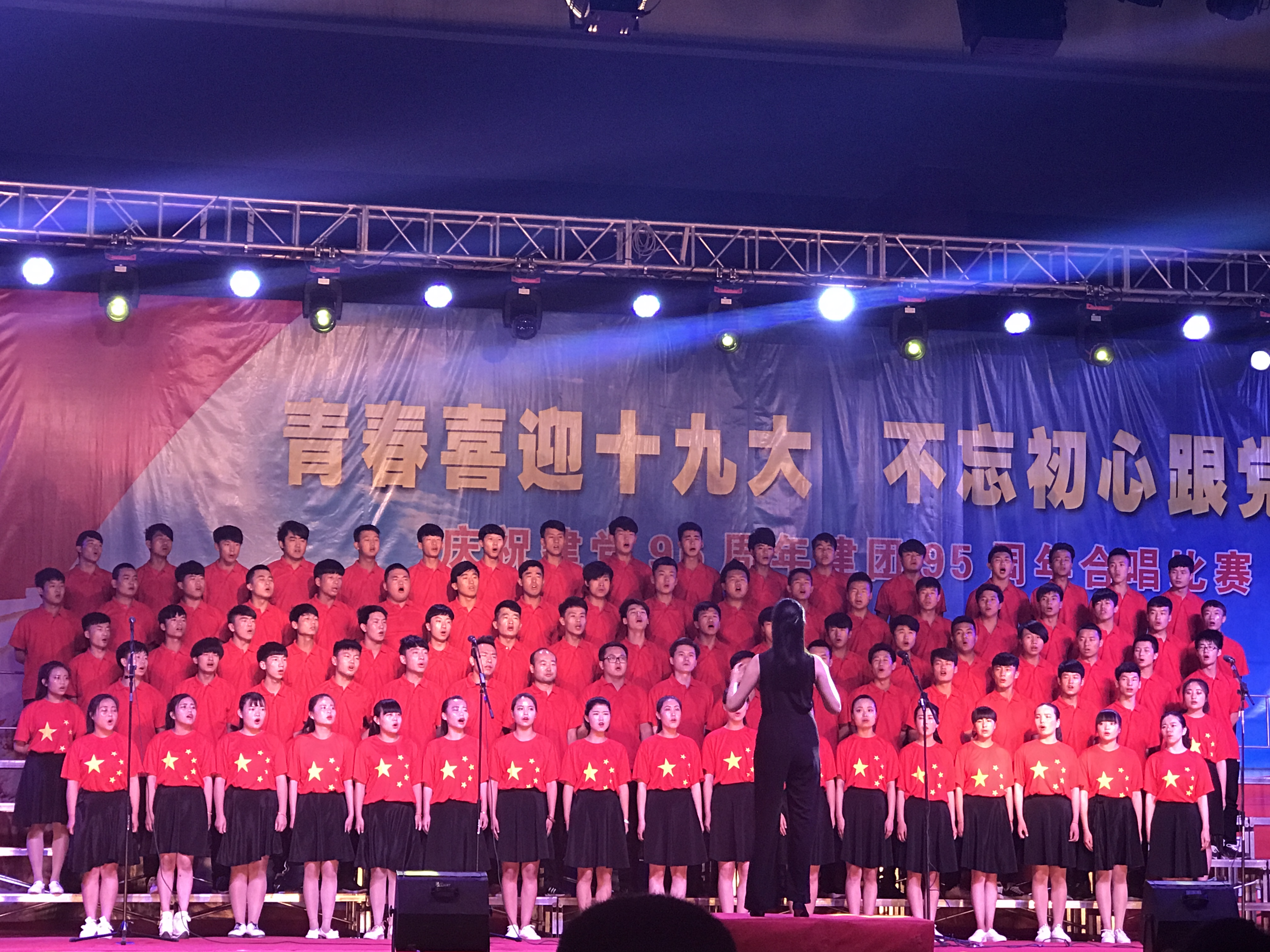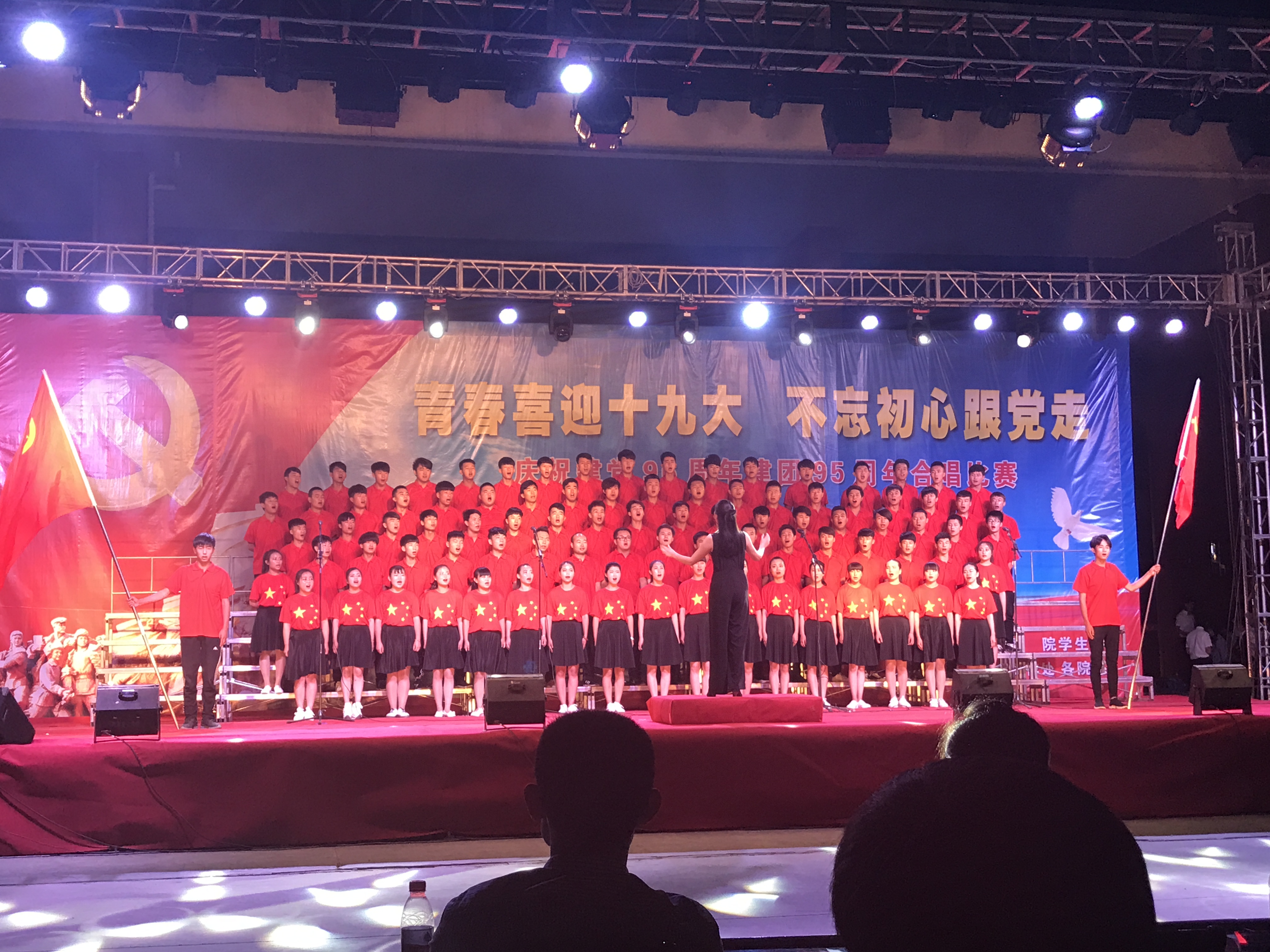 在持續(xù)半個月的合唱訓練中,我系參加大合唱的90名同學和6位老師充分的準備,以積極飽滿的態(tài)度投入到本次大合唱比賽的訓練中,付出了大量的精力,放棄了許多休息時間,展現(xiàn)出了不怕吃苦,堅持不懈,自強自信的精神。比賽中,隊員們齊聚在黨旗下,著裝整齊,精神飽滿,以高昂的熱情、嘹亮的嗓音唱出了對黨的擁戴,對未來的憧憬,贏得了評委及現(xiàn)場觀眾的熱烈掌聲。