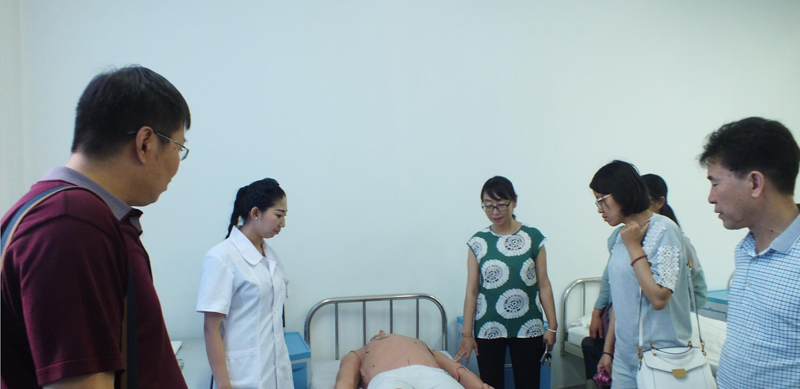 趙鳳舞一行參觀了護(hù)理系的生命科技館、機(jī)能實訓(xùn)室、基護(hù)實訓(xùn)室、內(nèi)外科實訓(xùn)室等醫(yī)學(xué)類實訓(xùn)室,詳細(xì)了解了實驗設(shè)備的運行情況和實驗實訓(xùn)課程的教學(xué)管理模式。韓曉萍向來賓們介紹了我院護(hù)理專業(yè)的發(fā)展歷史、課程建設(shè)、師資力量、實習(xí)就業(yè)及籌建實驗實訓(xùn)室取得的成果。