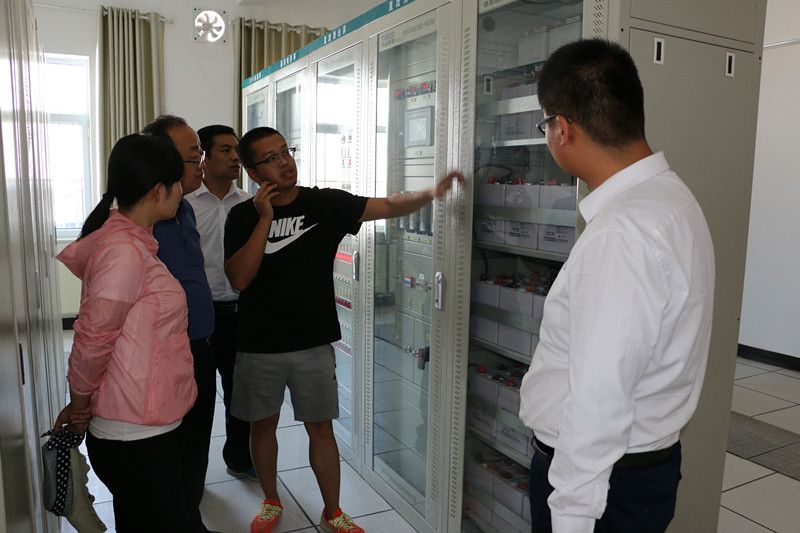 全體教師在電站技術(shù)人員帶領下,依次深入并網(wǎng)發(fā)電控制室、繼電保護室、SVG室(無功功率補償)、SVG聯(lián)絡變壓器、高壓開關站以及光伏陣列進行觀摩學習,在并網(wǎng)發(fā)電控制室觀摩監(jiān)控系統(tǒng)、設備運行等情況。通過現(xiàn)場培訓學習,老師們近距離熟悉了光伏支架,組件陣列、逆變器、控制器、匯流箱、配電柜等設備的安裝施工,學習了光伏系統(tǒng)集成設計及并網(wǎng)技術(shù)等,特別是對光伏電站運行安全操作規(guī)程進行了系統(tǒng)掌握。