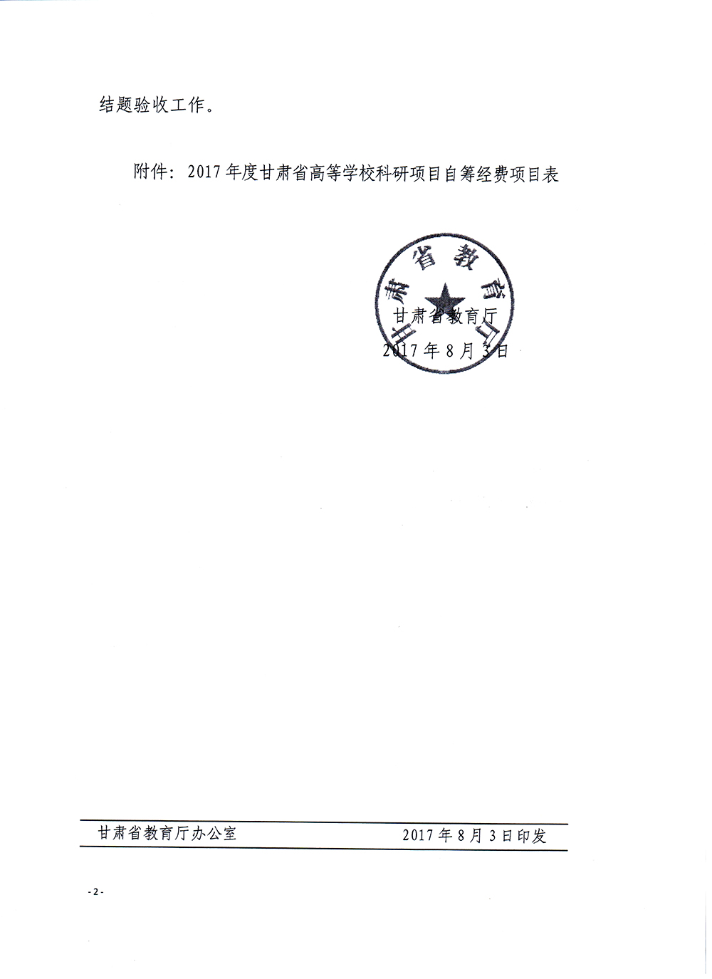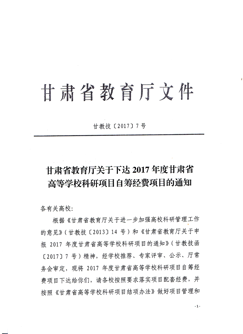 轉發(fā)甘肅省教育廳《關于下達2017年度甘肅省高等學??蒲许椖孔曰I經(jīng)費項目的通知》