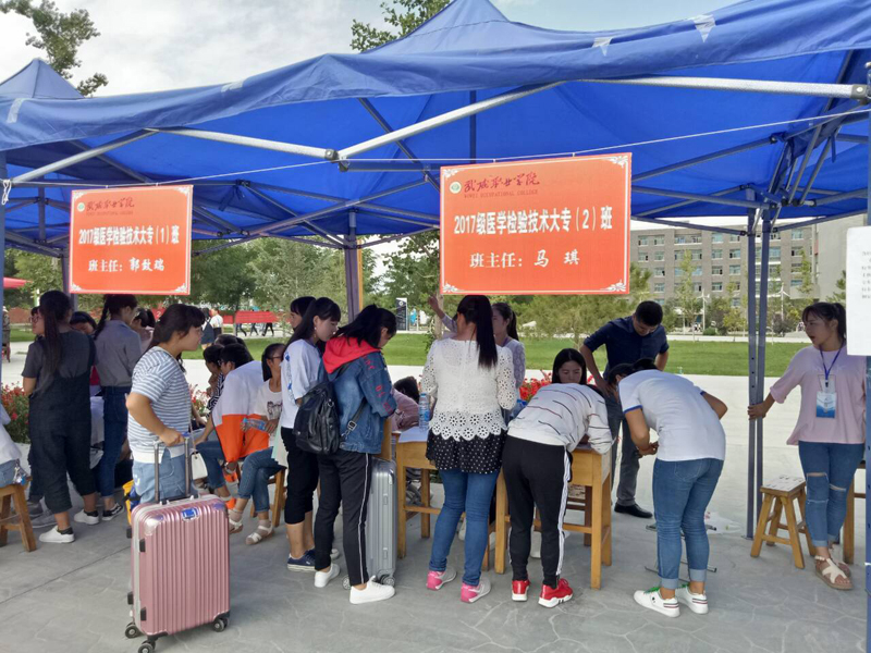 丹桂飄香正九月,又到一年迎新時(shí)。武威職業(yè)學(xué)院2017級新生報(bào)到工作于9月2日正式開始。醫(yī)學(xué)技術(shù)與信息管理系學(xué)生組織負(fù)責(zé)人和志愿者們奔跑在大學(xué)生活動(dòng)中心北廣場的各個(gè)角落,幫助新生搬運(yùn)行李和提供飲用水,熱情周到的服務(wù)給家長留下了深刻的印象;在新生接待區(qū),迎新的老師和學(xué)生耐心細(xì)致地為新生及其家長解決疑難問題,認(rèn)真負(fù)責(zé)的態(tài)度得到了家長和新生們的一致贊許,迎新現(xiàn)場還為新生家長們設(shè)立了專門休息區(qū),家長們或抬頭觀望,或互相攀談。為了使新生順利入學(xué),我系師生全力以赴,為新生及家長提供熱心、真誠、周到的服務(wù),期待新生們與學(xué)校一起共創(chuàng)新輝煌!