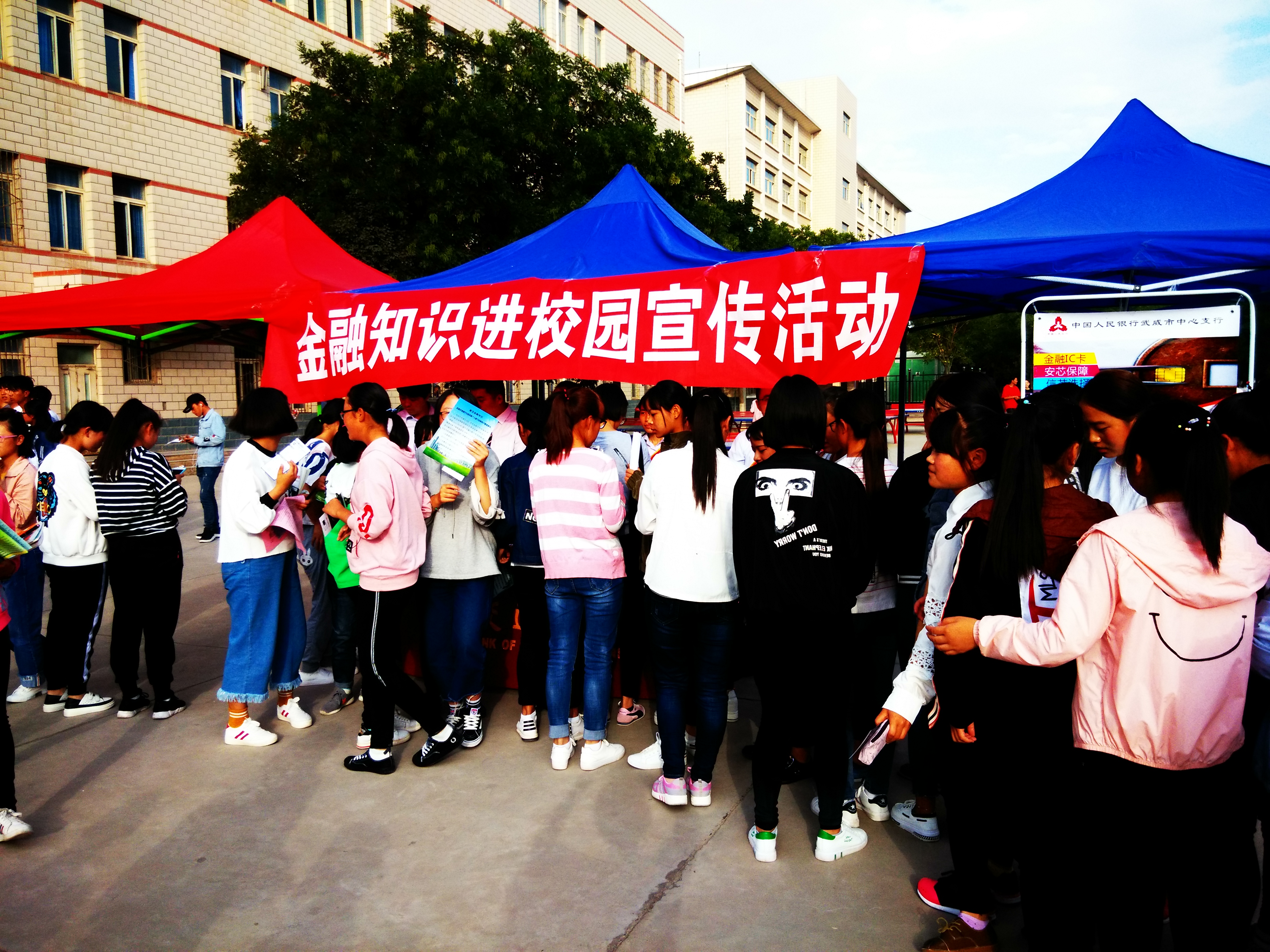 ???? 為幫助和引導(dǎo)大學(xué)生群體牢固樹立金融安全意識,9月21日下午,學(xué)生工作處邀請中國人民銀行武威分行、武威農(nóng)商銀行、交通銀行武威分行在學(xué)院尚德樓南操場開展了“送金融知識進(jìn)校園”宣傳活動,全院學(xué)生積極響應(yīng)號召,有1000余人參加了此次活動。