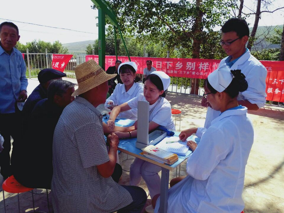 2017年暑假期間,護(hù)理系積極響應(yīng)院團(tuán)委暑期“三下鄉(xiāng)”社會實(shí)踐活動(dòng)的號召,組織11名學(xué)生成立了“愛心醫(yī)療服務(wù)團(tuán)”,赴武威市新井村、張義鎮(zhèn)、武威第十一中學(xué)、小洪溝河灣村、沙金臺村等多地開展了為期6天的社會實(shí)踐活動(dòng)。