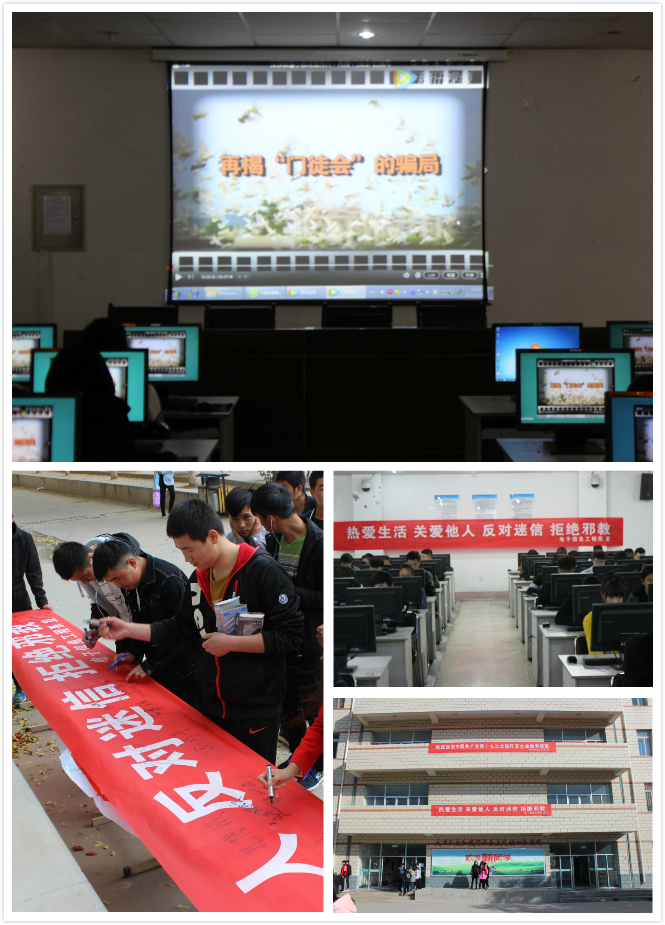 為了建設和諧校園,維護社會穩(wěn)定,凈化教育系統(tǒng)校園,電子信息工程于10月30日晚,在尚德樓11號機房開展了反邪教宣傳片放映活動。