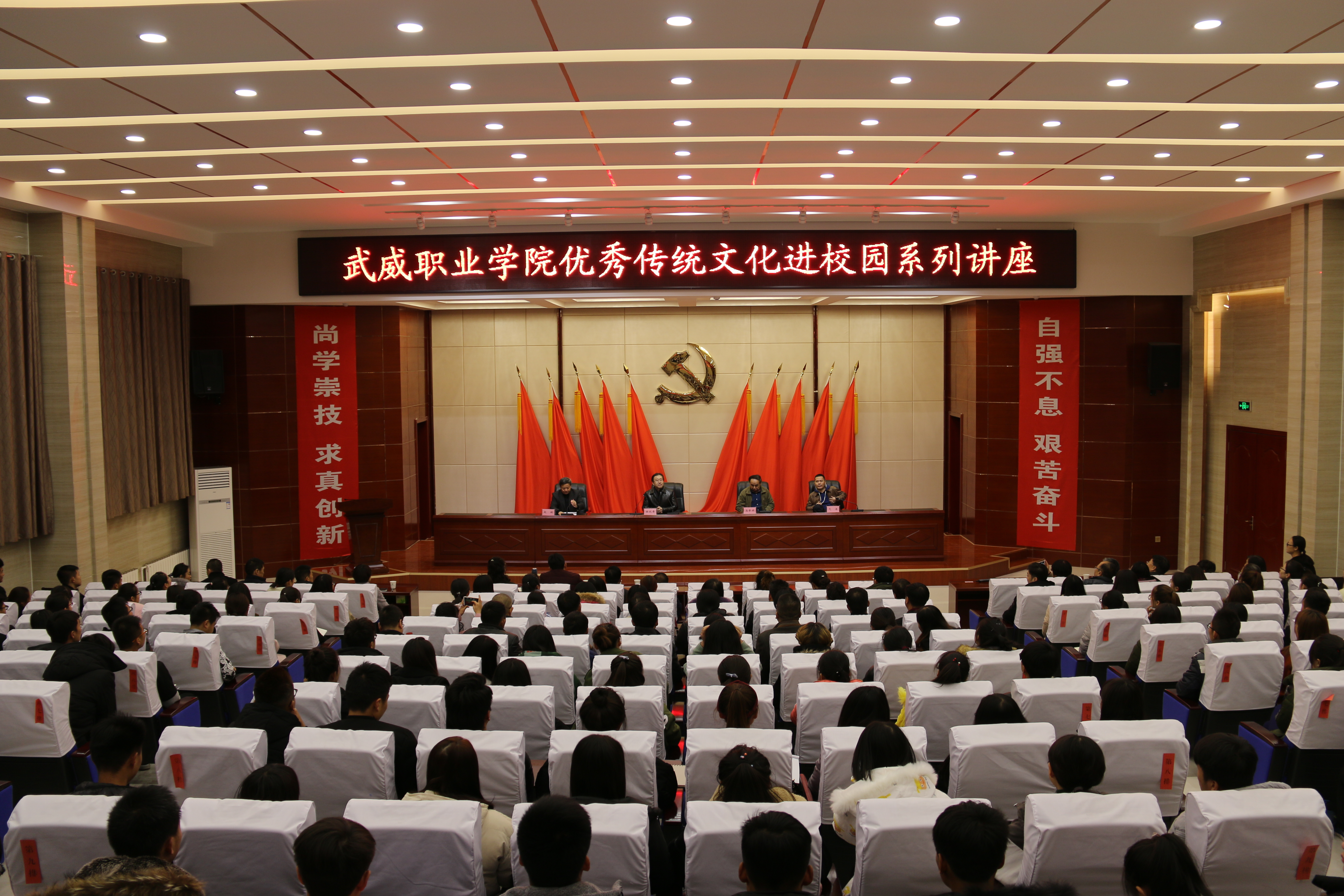 為貫徹落實(shí)《甘肅省實(shí)施中華優(yōu)秀傳統(tǒng)文化傳承發(fā)展工作方案》,推進(jìn)優(yōu)質(zhì)高等職業(yè)院校的建設(shè),加強(qiáng)傳統(tǒng)文化和校園文化相融合,提升校園文化軟實(shí)力,11月22日,學(xué)院在大學(xué)生活動(dòng)中心菁英廳舉辦優(yōu)秀傳統(tǒng)文化進(jìn)校園活動(dòng)。活動(dòng)邀請(qǐng)了西部著名作家、西北師范大學(xué)傳媒學(xué)院院長(zhǎng)徐兆壽,甘肅省作家協(xié)會(huì)主席、甘肅省社科院文化研究所所長(zhǎng)馬步升和甘肅省作協(xié)副秘書(shū)長(zhǎng)、70后新銳作家弋舟三位學(xué)者以“鳩摩羅什與涼州文化”為主題進(jìn)行了系列講座。學(xué)院黨委副書(shū)記趙明主持活動(dòng),學(xué)院師生共260余人聆聽(tīng)了講座。